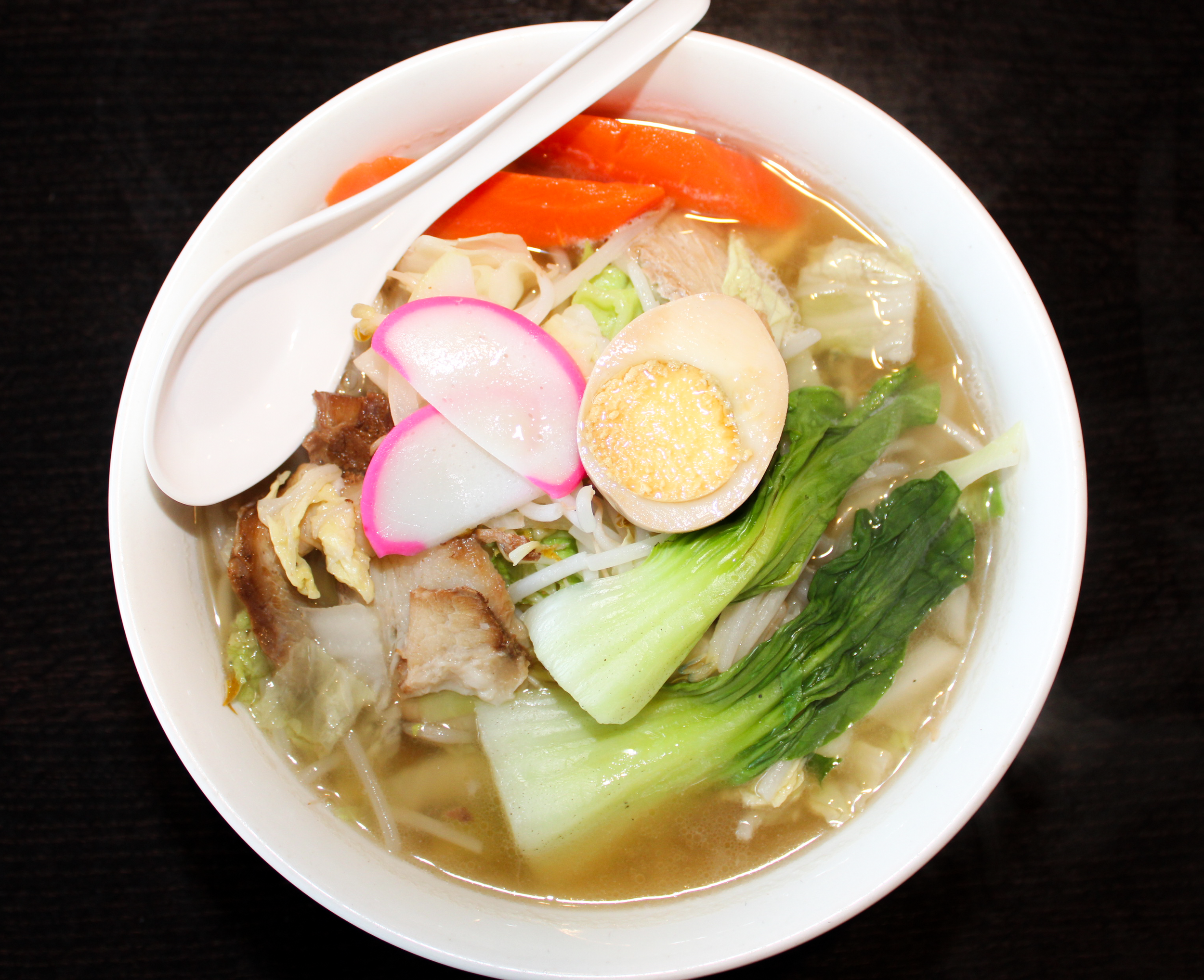 Toppings: Green onions, bamboo shoots, bean sprouts, egg, BBQ pork